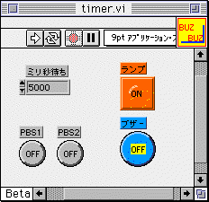 歩行者信号機の点滅,種々の警告灯等に使用しますが,タイマVI作成の時に使用したTick Count.viの応用となります。
